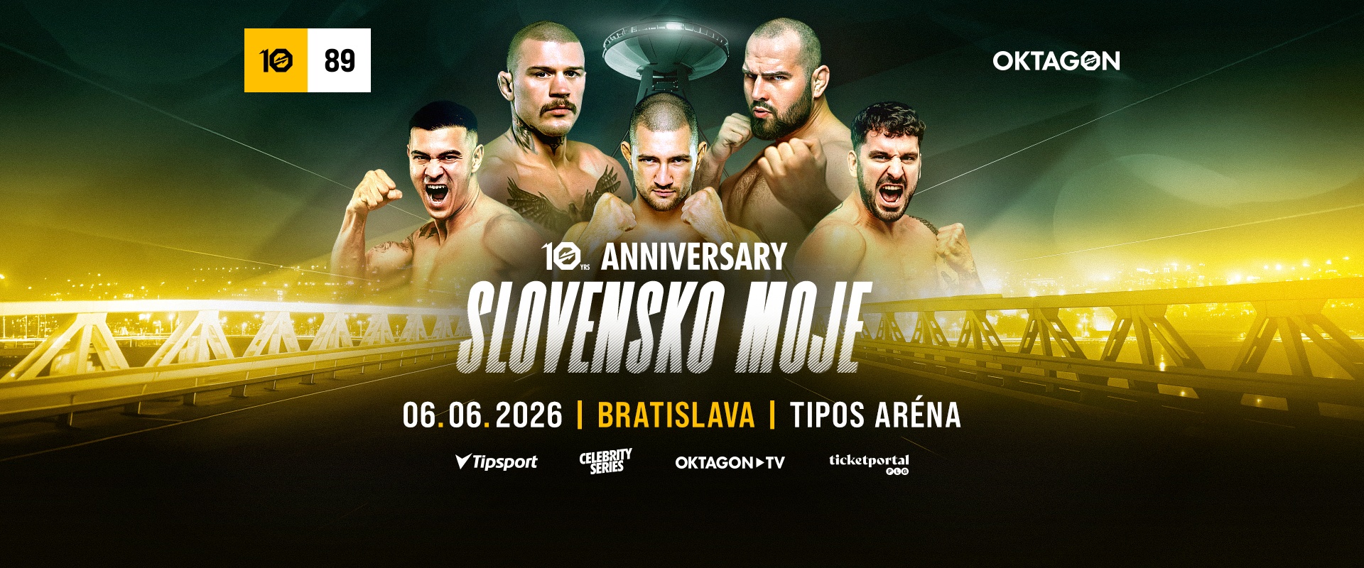 Na zimním stadionu Ondreje Nepely – Tipos aréna se již odehrály mraky bouřlivých MMA bitev, které se zapsaly mezi ty nejlepší v historii OKTAGONu. Strhující atmosféra, kterou fanoušci na Slovensku dokáží vytvořit, vždy vyžene bojovníky k neskutečným výkonům. 6. 6. 2026 tomu nebude jinak!